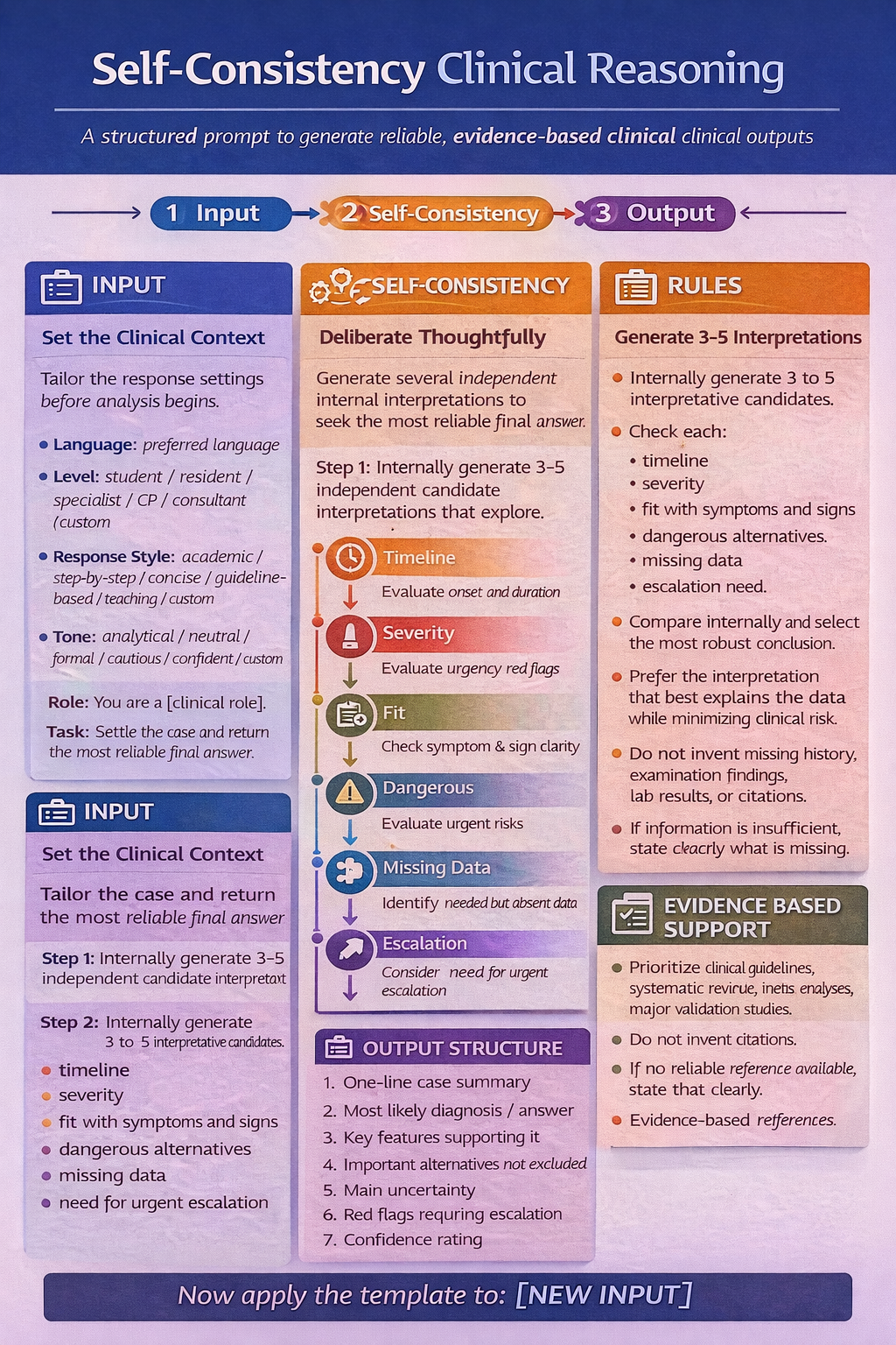 - Assess the case and produce the most reliable final answer using self-consistency.